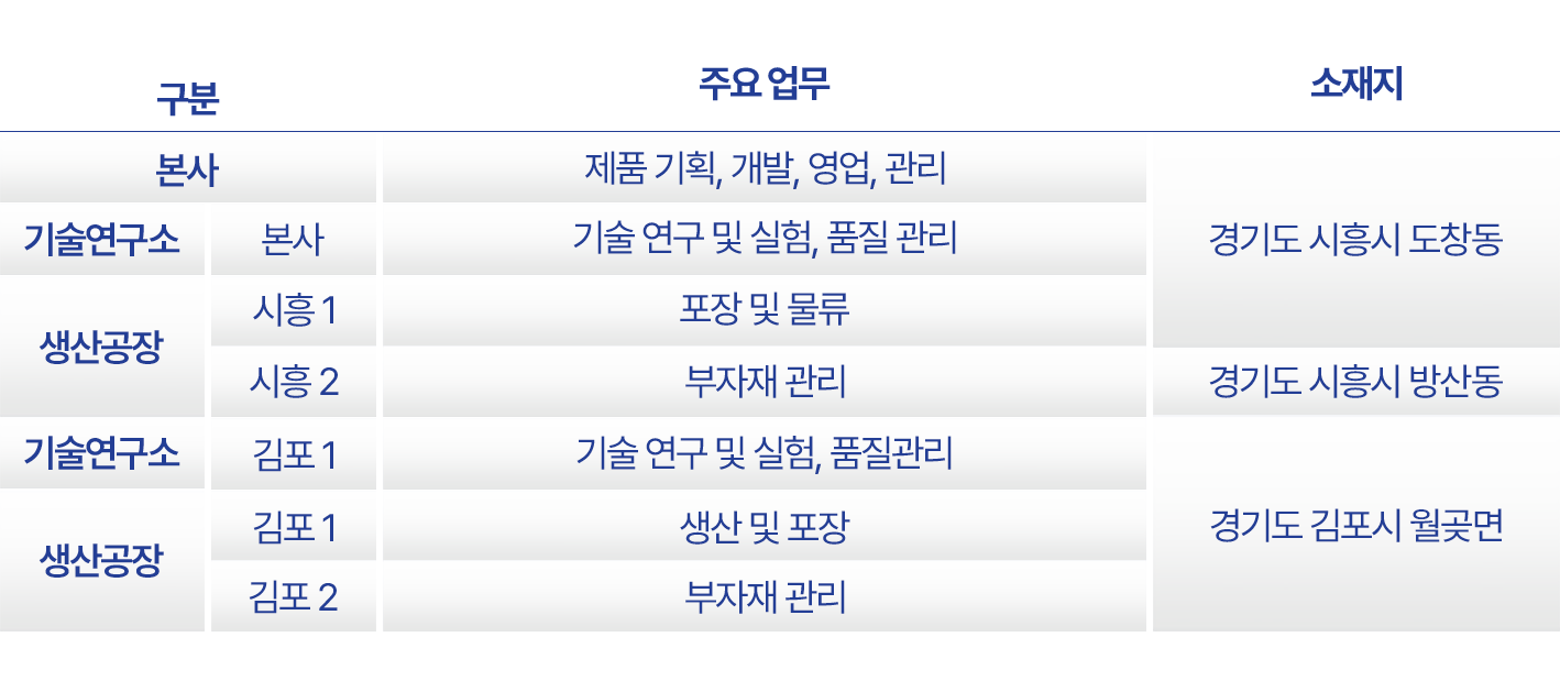 김포 기술연구소 및 생산 공장을 중심으로,